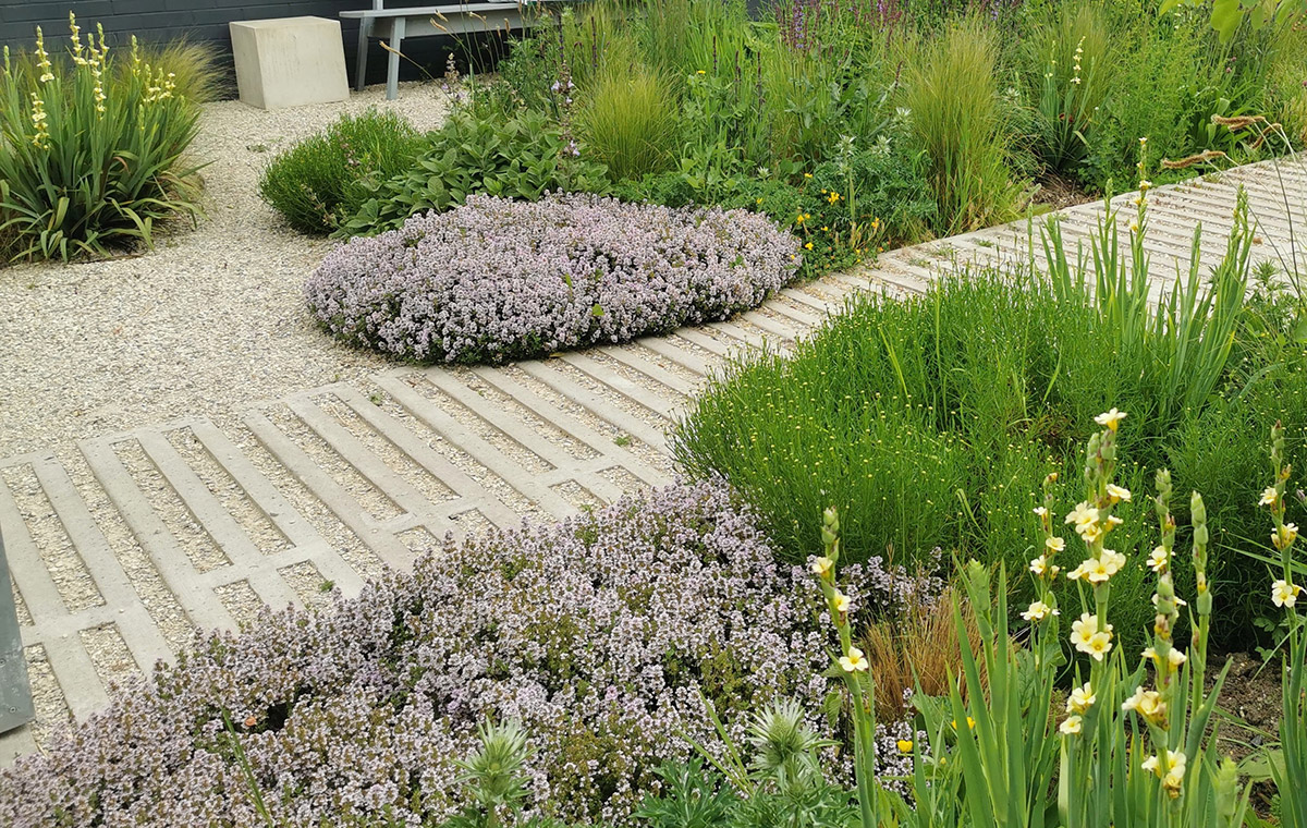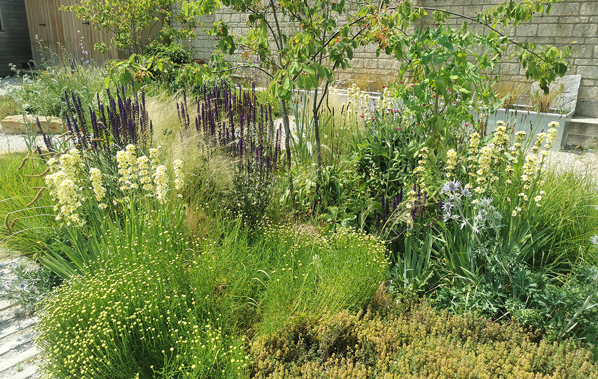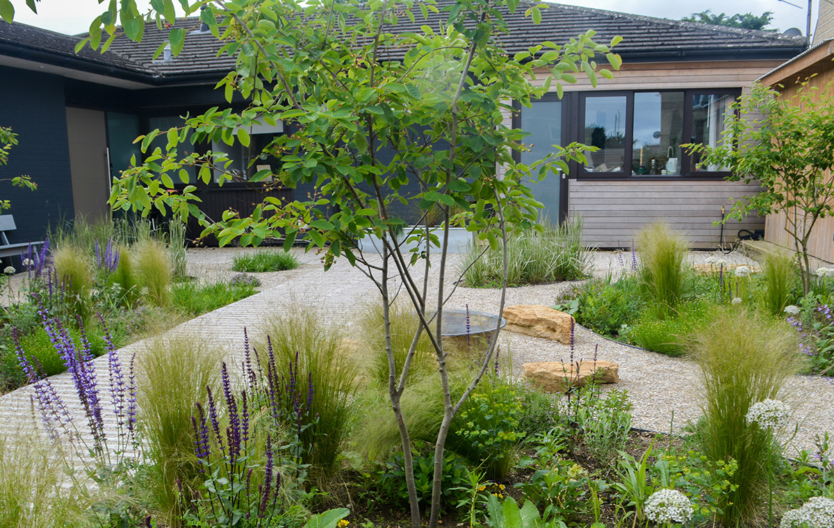 The courtyard is now a tranquil yet dynamic space, using locally sourced and bespoke materials. Planting of grasses, edible herbs, perennials and multi-stem trees greens the area and creates texture and interest.