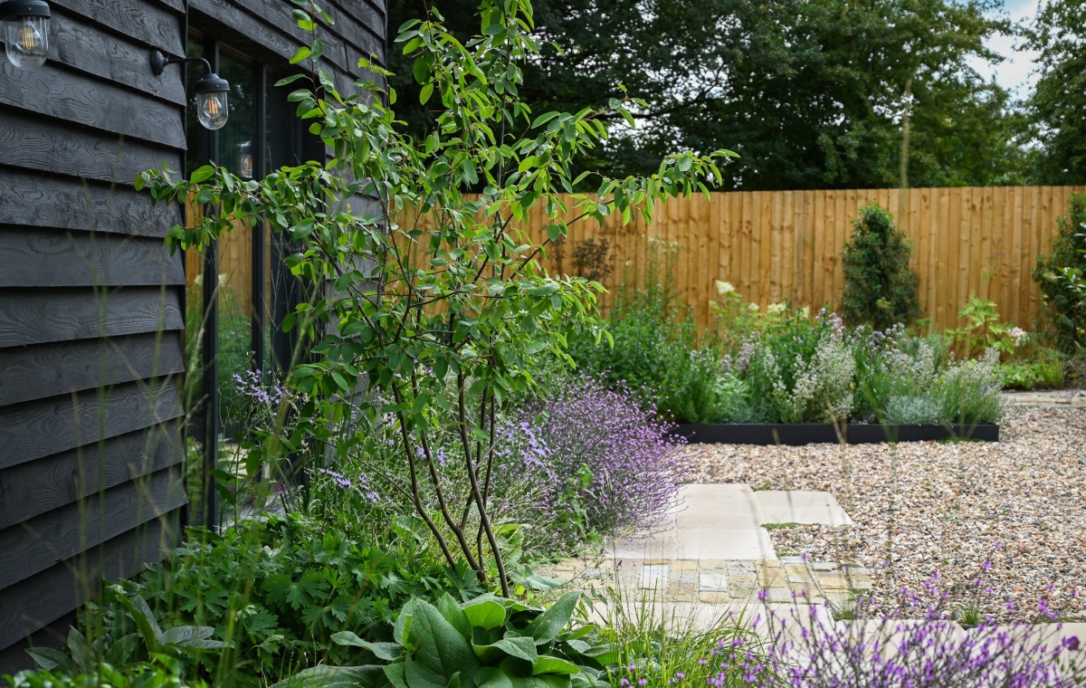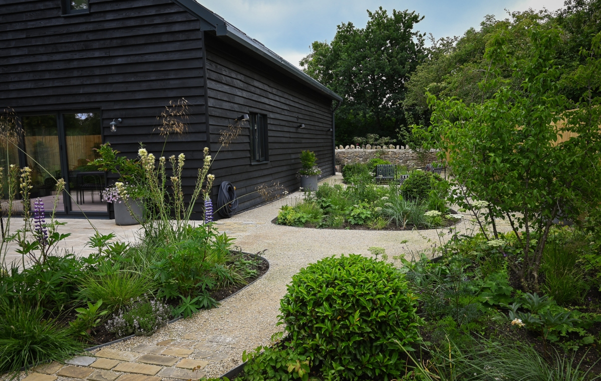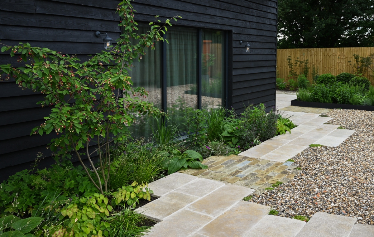 The gardens are currently being transformed from a blank canvas to several dining and entertaining spaces connected by meandering pathways through soft natural style planting. The front garden, previously plain gravel, now has pathways and planting to create a much more inviting entrance.